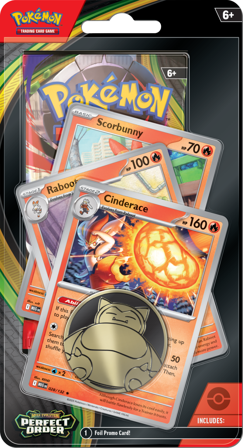 Pokémon TCG: Mega Evolution – Perfect Order – Premium Checklane Blister Cinderace to tematyczny zestaw kart kolekcjonerskich, który łączy popularne rozszerzenie Perfect Order z jednym z najbardziej rozpoznawalnych Pokémonów typu Fire. Produkt został wydany przez Pokemon Company International i stanowi atrakcyjny wybór zarówno dla graczy, jak i kolekcjonerów Pokémon TCG.